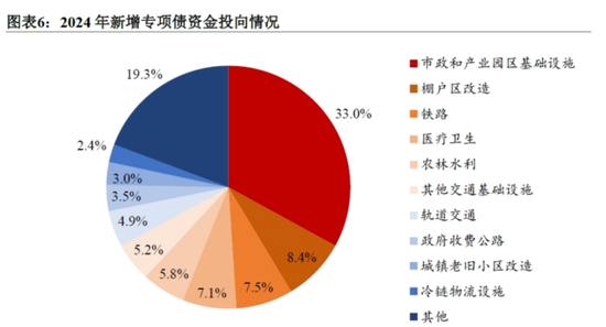 其中,新增专项债券的前5大投向为市政和产业园区、棚户区改造、铁路、医疗卫生、农林水利。