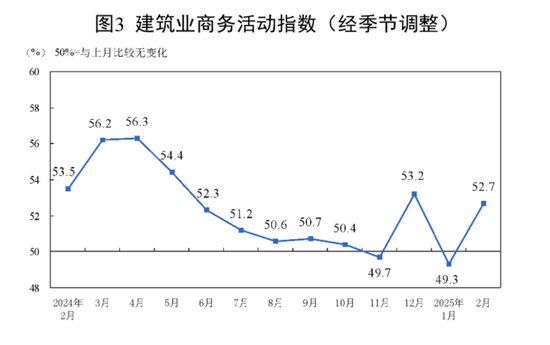 2025年2月,建筑业商务活动指数较上月提高了3.4个百分点,说明建筑业整体正在变得更景气。