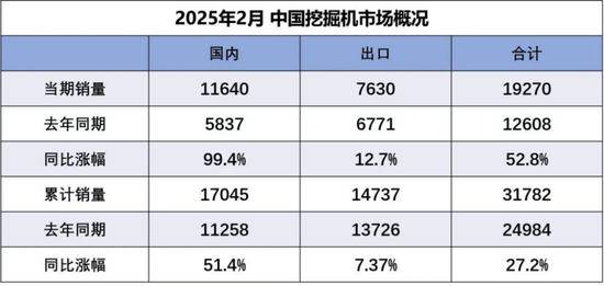 今年2月,各类挖掘机销售19270台,同比增长52.8%。