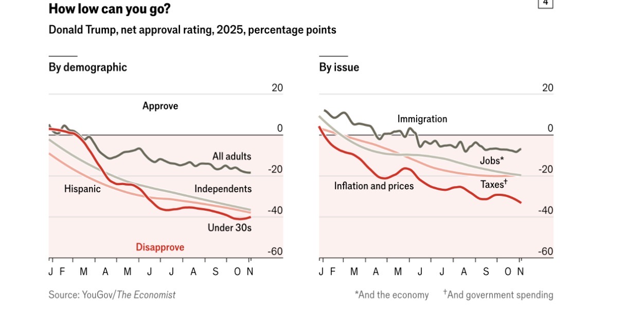 但11月4日举行的选举——也是明年中期选举前的最后一次,让民主党重新露出笑容。如今尘埃落定,《经济学人》的数据团队深入分析结果,探讨这是否意味着川普和共和党面临更大的麻烦。