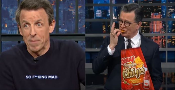 主持人Seth Meyers打趣道:“我从未见过加拿大人如此愤怒,他们都爆炸了!”