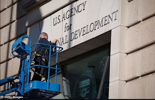 (已关闭的美国际开发署USAID正在被拆除大楼标记)