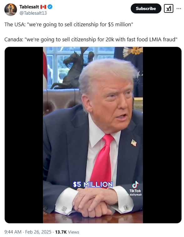 加拿大:我们将以$2万加元的价格通过LMIA欺诈出售公民身份。”