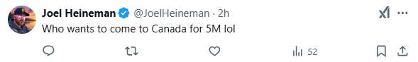 “谁会愿意花$500万来加拿大?哈哈哈。”