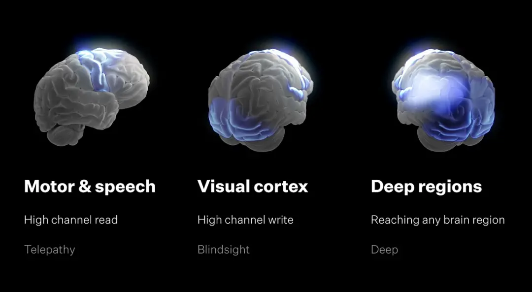 Neuralink的目标,首先是增加可以连接的神经元数量,第二就是扩展到大脑的任意部分。